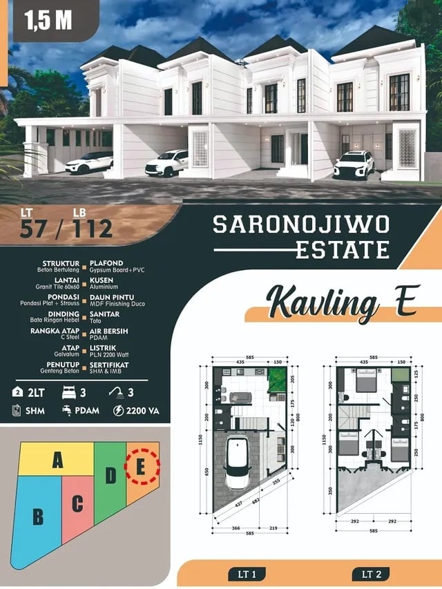 Saronojiwo Estate menawarkan 5 unit eksklusif dengan desain mewah, kokoh, dan berkelas, cocok untuk keluarga modern yang menginginkan kenyamanan sekaligus prestise.