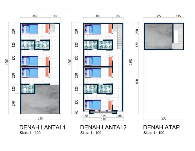 Berikut adalah rincian terkait denah dan ukuran/dimensi setiap unit.